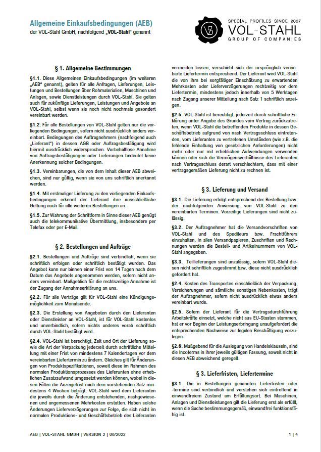 Allgemeine Einkaufsbedingungen (AEB) | VOL-Stahl GmbH