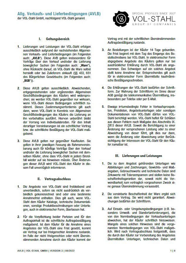 Allgemeine Verkaufs- und Lieferbedingungen (AVLB) | VOL-Stahl GmbH