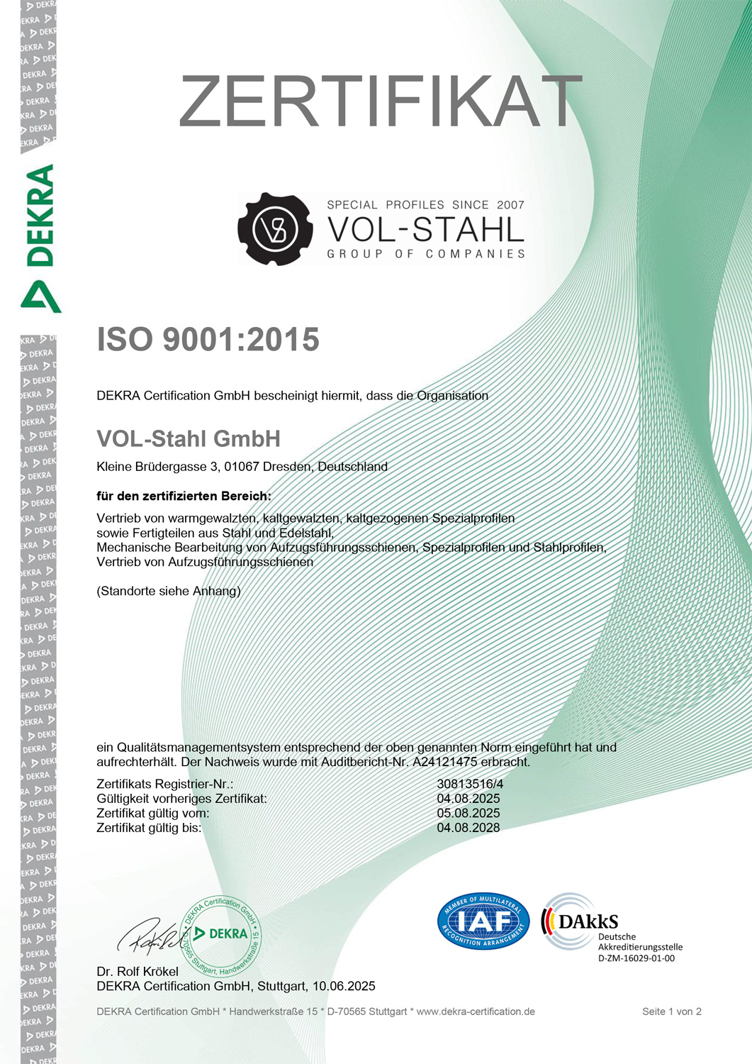 Vom Halbzeug bis zu den endgültigen Ziehschritten steuert VOL-Stahl den gesamten Herstellungsprozess. Um die Profile als fertig produziert einzustufen, durchlaufen alle Produkte mehrere Prüfstationen. Diese Vorgehensweise garantiert, dass fehlerhafte Produkte, welche den Kundenanforderungen nicht entsprechen, entdeckt und umgehend beseitigt werden.